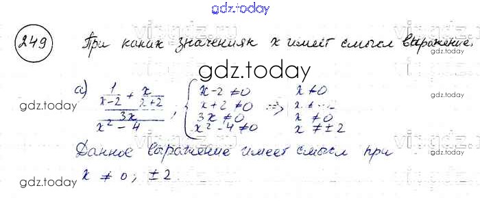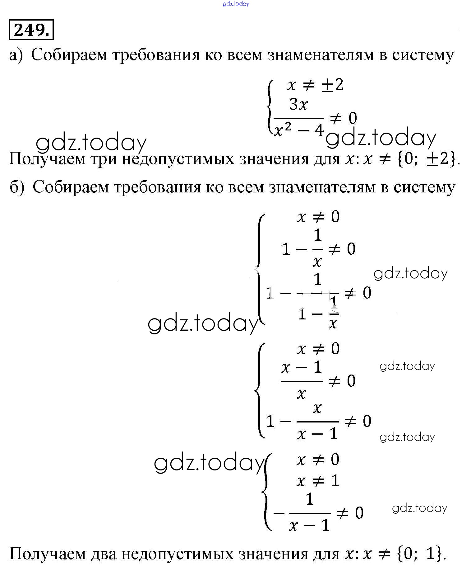 На страницах сайта gdz.today вы найдете учебный и вспомогательный материал, направленный на улучшения знаний школьной программы. ГДЗ - онлайн мир знаний Решение к упражнениям 249 Учебнику по Алгебре для 8 класса Макарычев, Миндюк Просвещение 2016