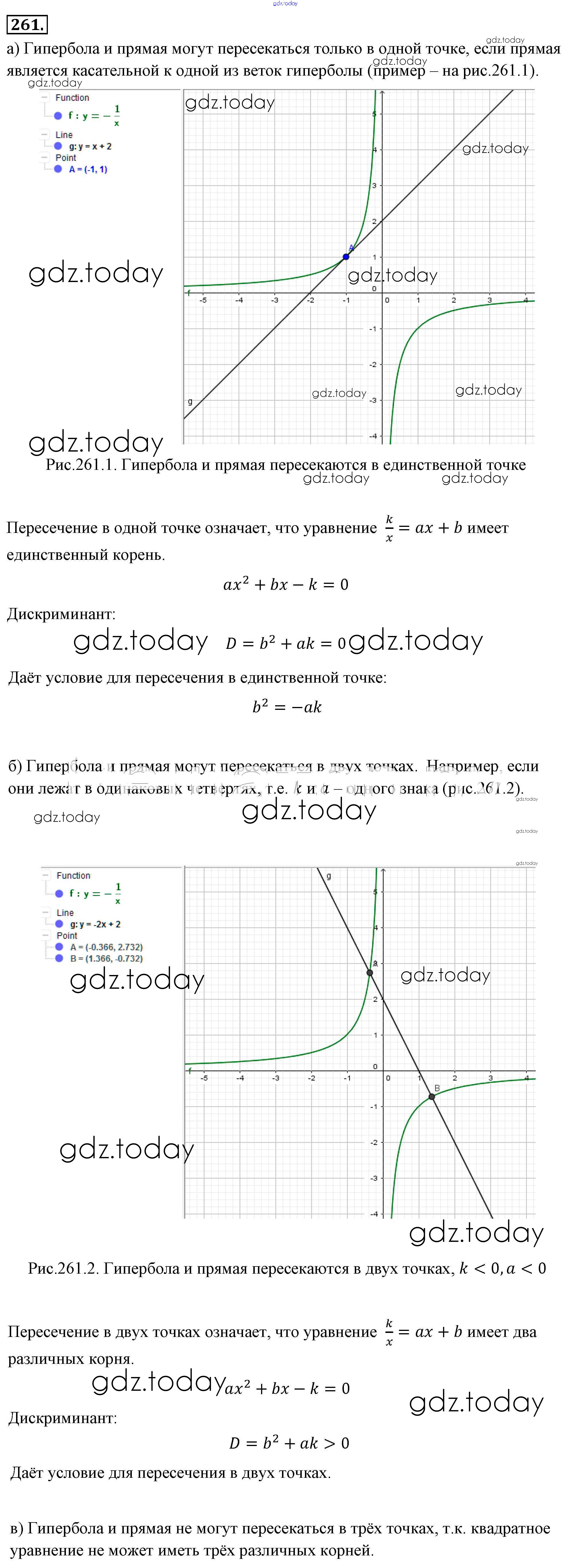 На страницах сайта gdz.today вы найдете учебный и вспомогательный материал, направленный на улучшения знаний школьной программы. ГДЗ - онлайн мир знаний Решение к упражнениям 261 Учебнику по Алгебре для 8 класса Макарычев, Миндюк Просвещение 2016