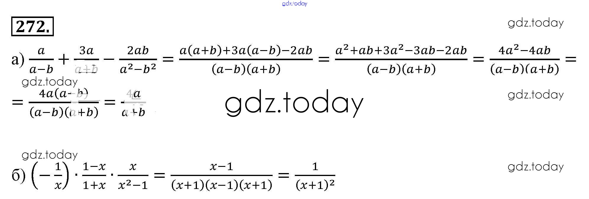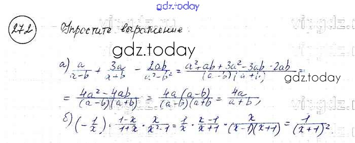 На страницах сайта gdz.today вы найдете учебный и вспомогательный материал, направленный на улучшения знаний школьной программы. ГДЗ - онлайн мир знаний Решение к упражнениям 272 Учебнику по Алгебре для 8 класса Макарычев, Миндюк Просвещение 2016