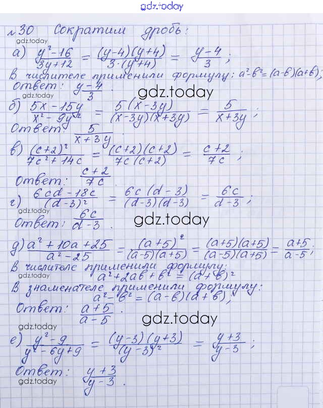 На страницах сайта gdz.today вы найдете учебный и вспомогательный материал, направленный на улучшения знаний школьной программы. ГДЗ - онлайн мир знаний Решение к упражнениям 30 Учебнику по Алгебре для 8 класса Макарычев, Миндюк Просвещение 2016