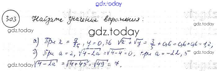 На страницах сайта gdz.today вы найдете учебный и вспомогательный материал, направленный на улучшения знаний школьной программы. ГДЗ - онлайн мир знаний Решение к упражнениям 303 Учебнику по Алгебре для 8 класса Макарычев, Миндюк Просвещение 2016