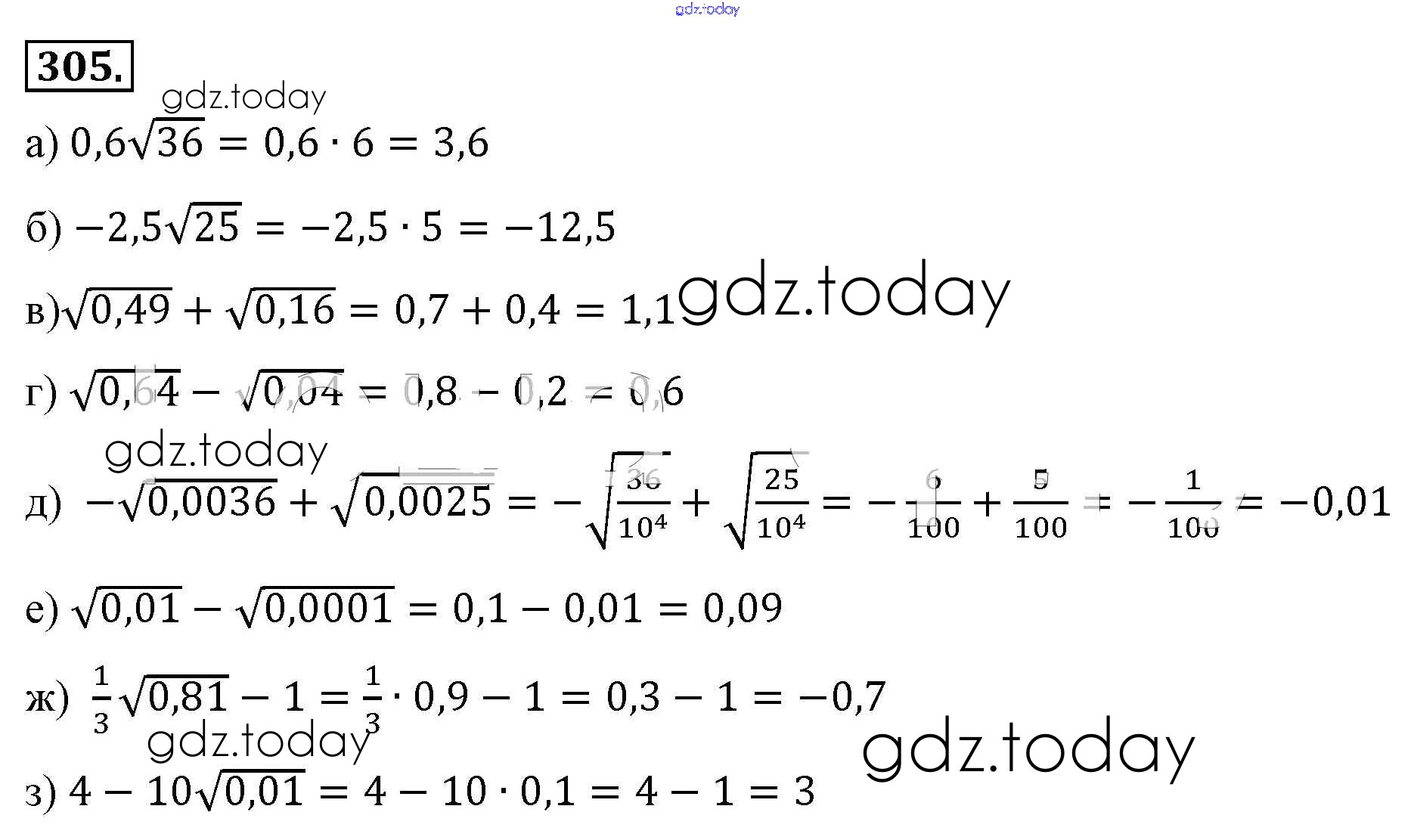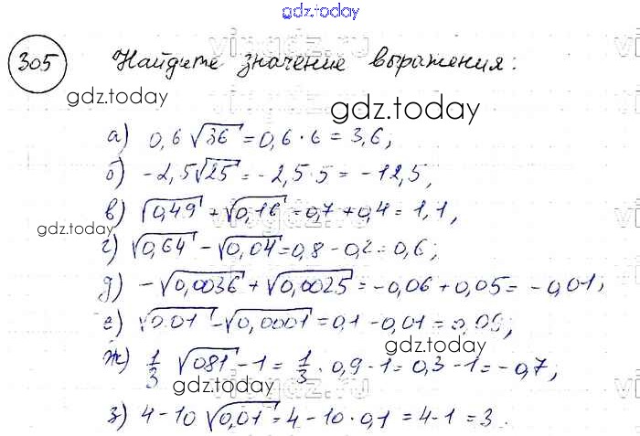 На страницах сайта gdz.today вы найдете учебный и вспомогательный материал, направленный на улучшения знаний школьной программы. ГДЗ - онлайн мир знаний Решение к упражнениям 305 Учебнику по Алгебре для 8 класса Макарычев, Миндюк Просвещение 2016