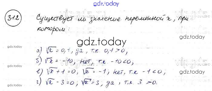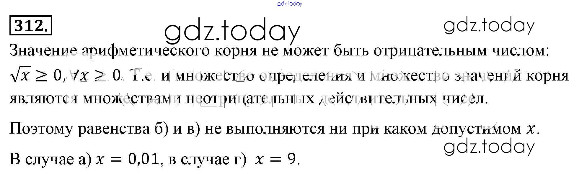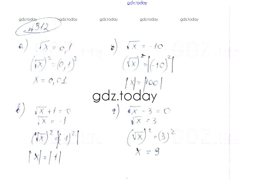 На страницах сайта gdz.today вы найдете учебный и вспомогательный материал, направленный на улучшения знаний школьной программы. ГДЗ - онлайн мир знаний Решение к упражнениям 312 Учебнику по Алгебре для 8 класса Макарычев, Миндюк Просвещение 2016