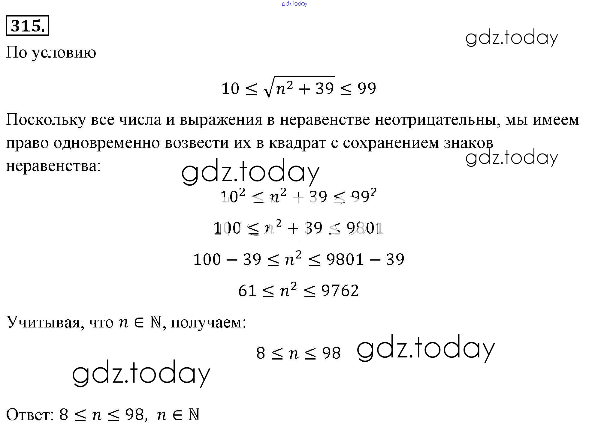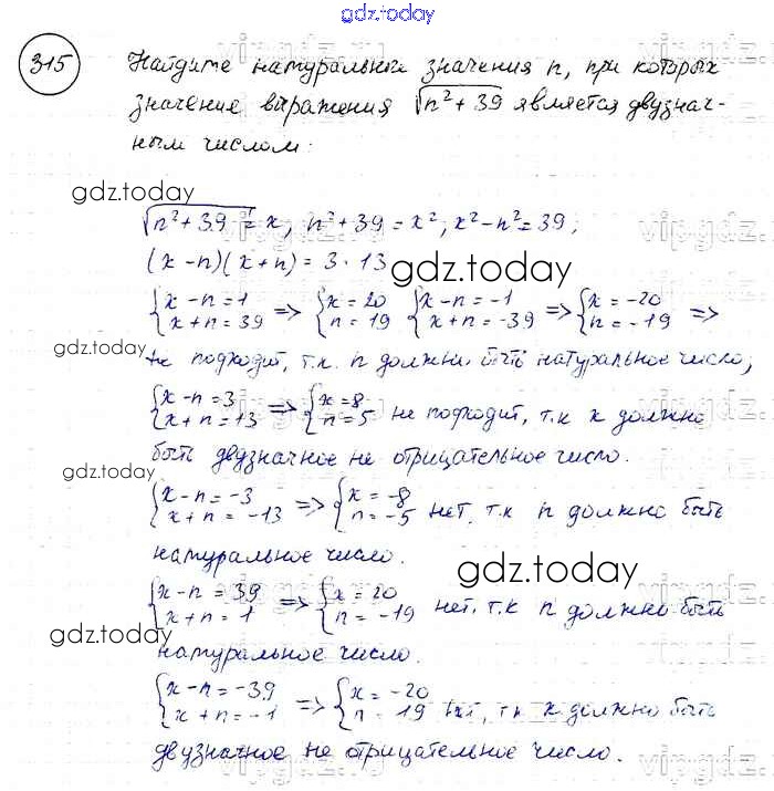 На страницах сайта gdz.today вы найдете учебный и вспомогательный материал, направленный на улучшения знаний школьной программы. ГДЗ - онлайн мир знаний Решение к упражнениям 315 Учебнику по Алгебре для 8 класса Макарычев, Миндюк Просвещение 2016