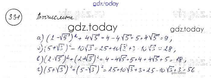 На страницах сайта gdz.today вы найдете учебный и вспомогательный материал, направленный на улучшения знаний школьной программы. ГДЗ - онлайн мир знаний Решение к упражнениям 331 Учебнику по Алгебре для 8 класса Макарычев, Миндюк Просвещение 2016
