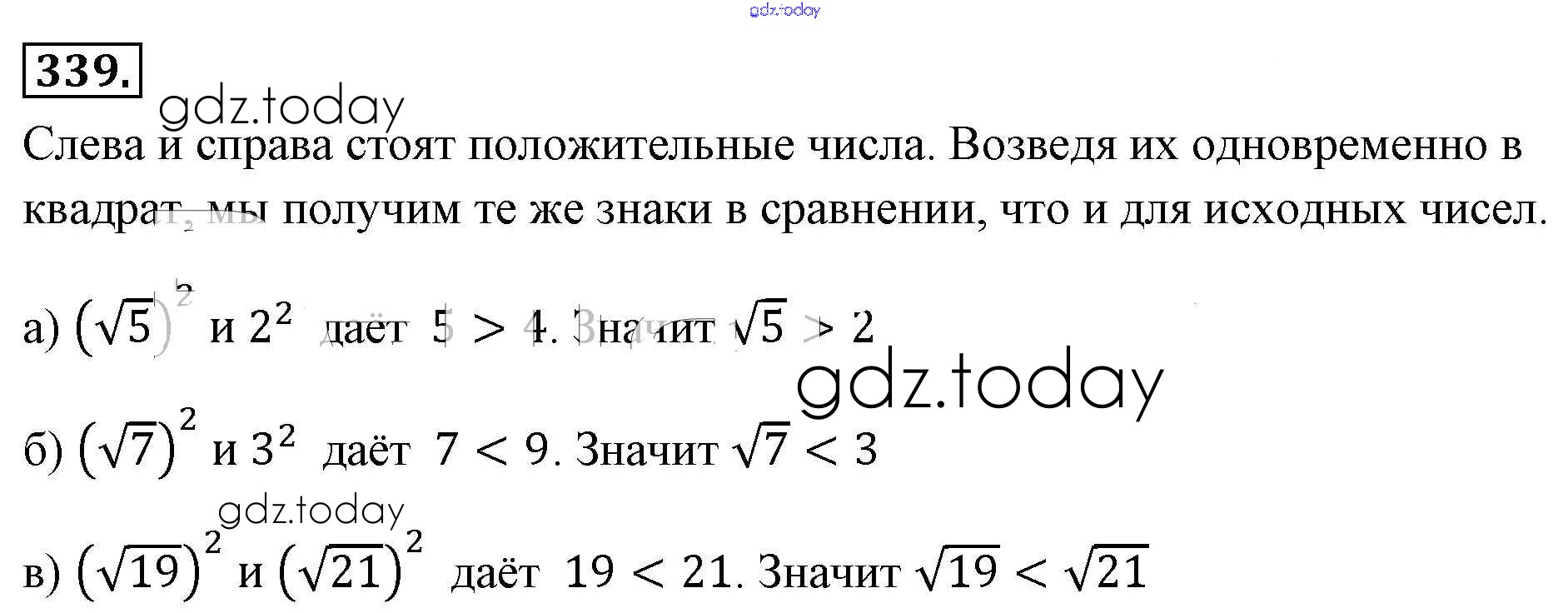 На страницах сайта gdz.today вы найдете учебный и вспомогательный материал, направленный на улучшения знаний школьной программы. ГДЗ - онлайн мир знаний Решение к упражнениям 339 Учебнику по Алгебре для 8 класса Макарычев, Миндюк Просвещение 2016