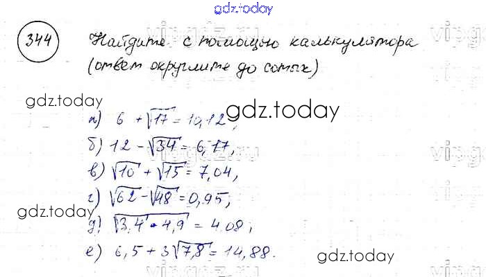 На страницах сайта gdz.today вы найдете учебный и вспомогательный материал, направленный на улучшения знаний школьной программы. ГДЗ - онлайн мир знаний Решение к упражнениям 344 Учебнику по Алгебре для 8 класса Макарычев, Миндюк Просвещение 2016