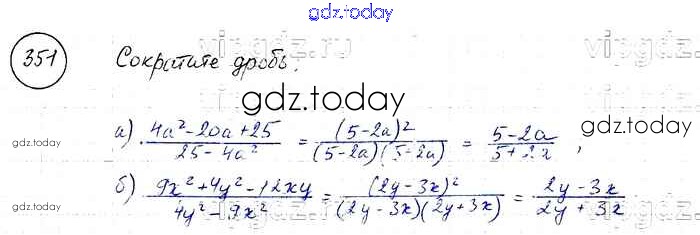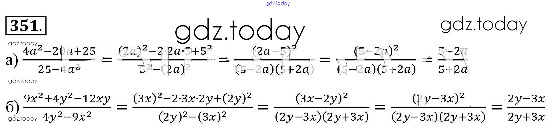 На страницах сайта gdz.today вы найдете учебный и вспомогательный материал, направленный на улучшения знаний школьной программы. ГДЗ - онлайн мир знаний Решение к упражнениям 351 Учебнику по Алгебре для 8 класса Макарычев, Миндюк Просвещение 2016