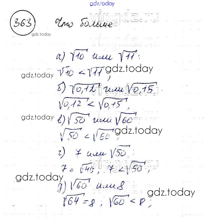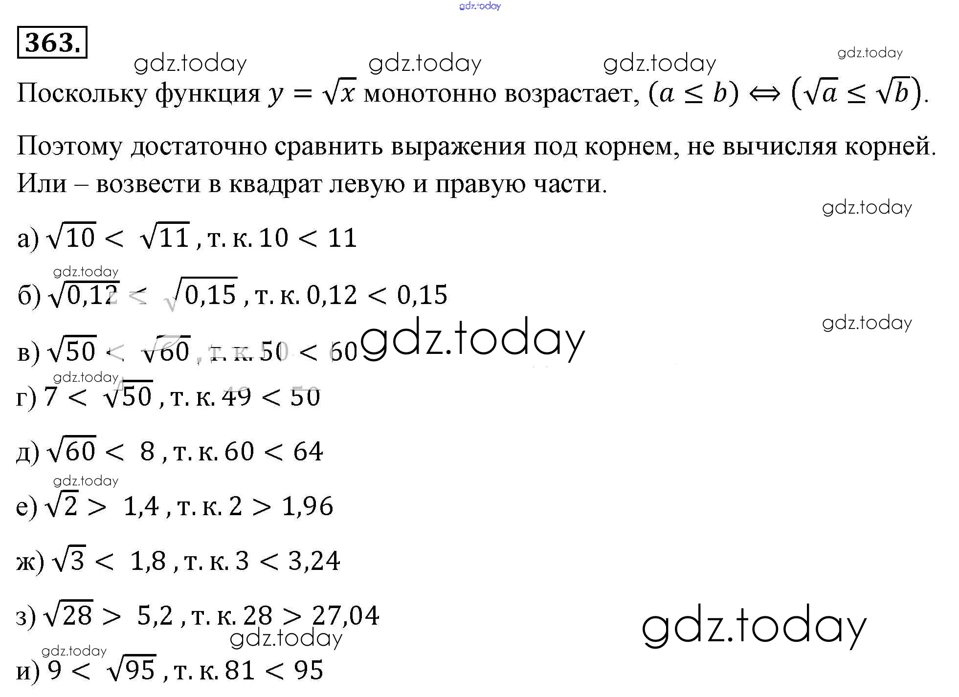 На страницах сайта gdz.today вы найдете учебный и вспомогательный материал, направленный на улучшения знаний школьной программы. ГДЗ - онлайн мир знаний Решение к упражнениям 363 Учебнику по Алгебре для 8 класса Макарычев, Миндюк Просвещение 2016