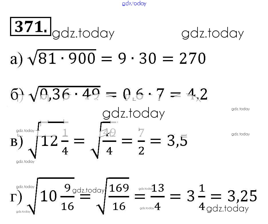 На страницах сайта gdz.today вы найдете учебный и вспомогательный материал, направленный на улучшения знаний школьной программы. ГДЗ - онлайн мир знаний Решение к упражнениям 371 Учебнику по Алгебре для 8 класса Макарычев, Миндюк Просвещение 2016