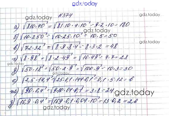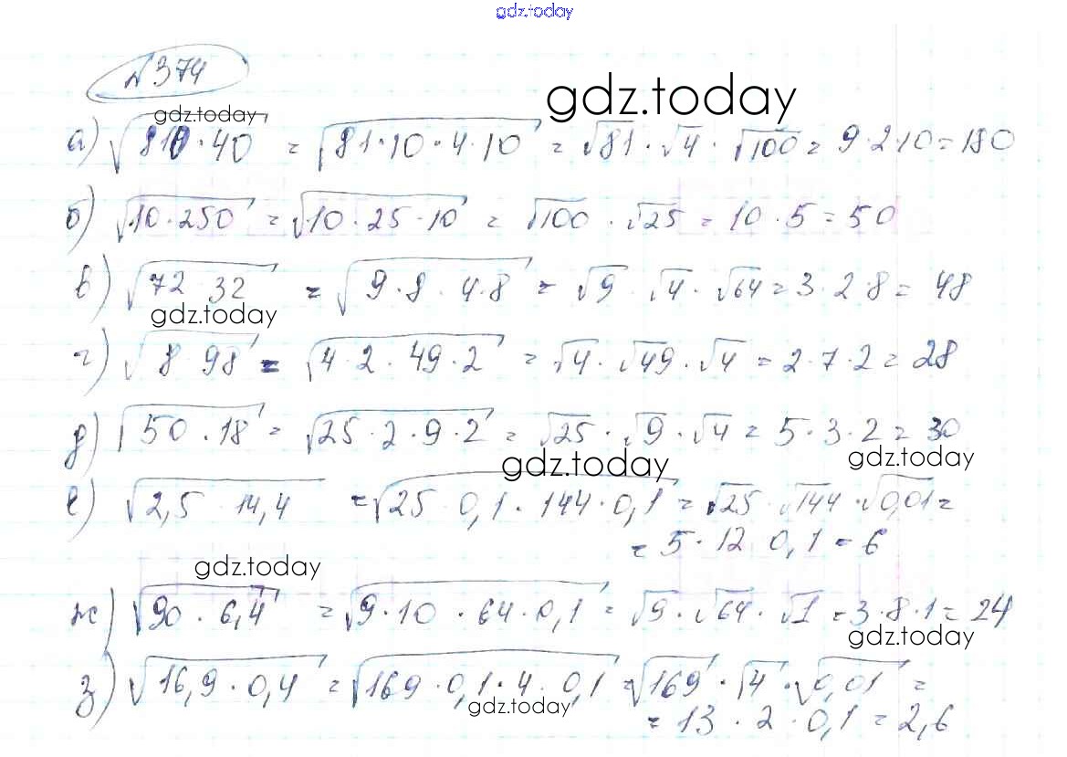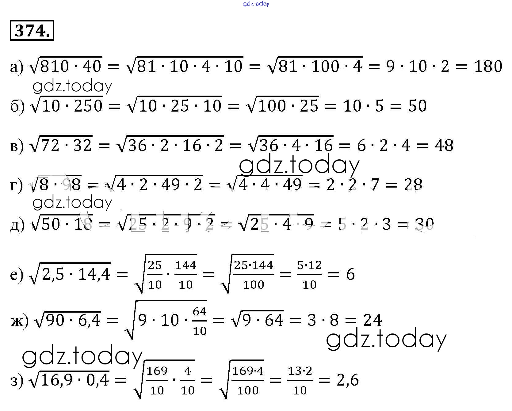 На страницах сайта gdz.today вы найдете учебный и вспомогательный материал, направленный на улучшения знаний школьной программы. ГДЗ - онлайн мир знаний Решение к упражнениям 374 Учебнику по Алгебре для 8 класса Макарычев, Миндюк Просвещение 2016