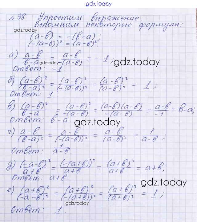 На страницах сайта gdz.today вы найдете учебный и вспомогательный материал, направленный на улучшения знаний школьной программы. ГДЗ - онлайн мир знаний Решение к упражнениям 38 Учебнику по Алгебре для 8 класса Макарычев, Миндюк Просвещение 2016