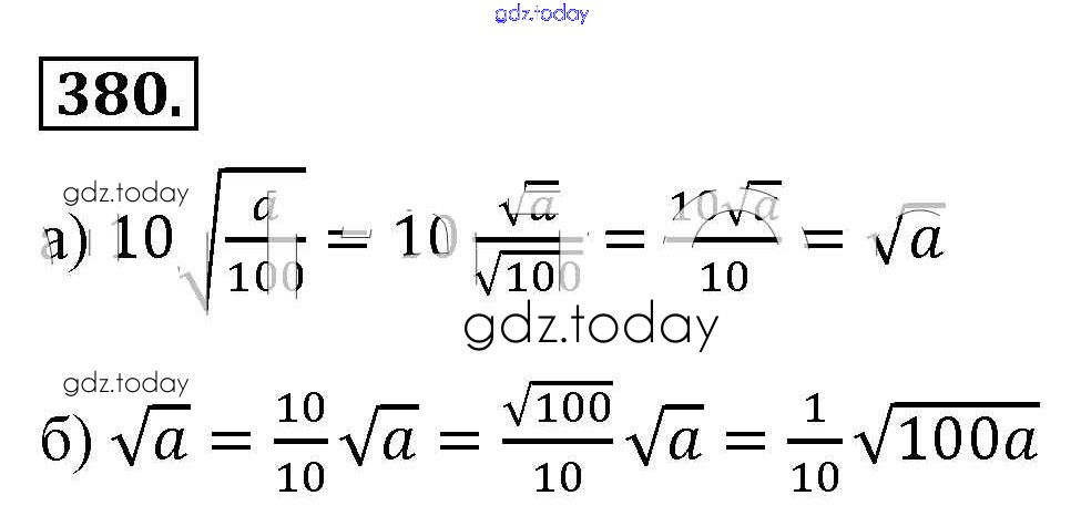 На страницах сайта gdz.today вы найдете учебный и вспомогательный материал, направленный на улучшения знаний школьной программы. ГДЗ - онлайн мир знаний Решение к упражнениям 380 Учебнику по Алгебре для 8 класса Макарычев, Миндюк Просвещение 2016