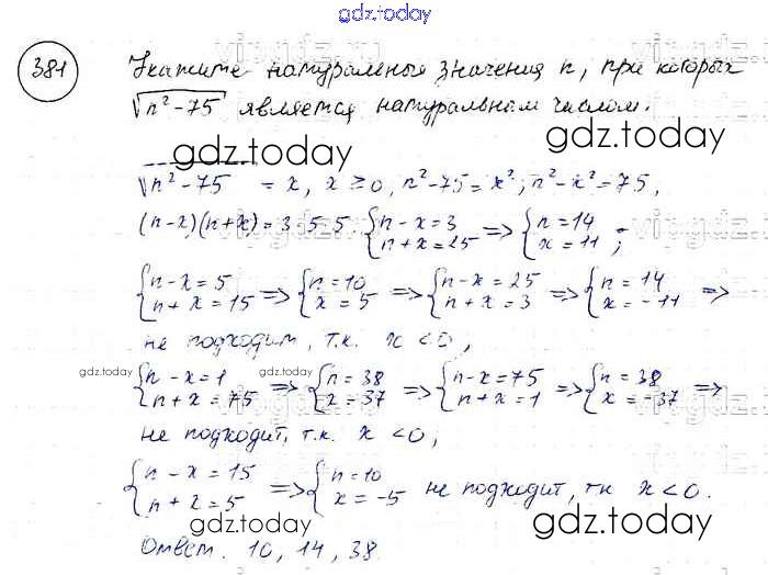 На страницах сайта gdz.today вы найдете учебный и вспомогательный материал, направленный на улучшения знаний школьной программы. ГДЗ - онлайн мир знаний Решение к упражнениям 381 Учебнику по Алгебре для 8 класса Макарычев, Миндюк Просвещение 2016