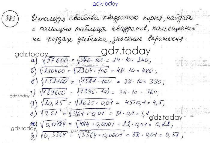 На страницах сайта gdz.today вы найдете учебный и вспомогательный материал, направленный на улучшения знаний школьной программы. ГДЗ - онлайн мир знаний Решение к упражнениям 383 Учебнику по Алгебре для 8 класса Макарычев, Миндюк Просвещение 2016