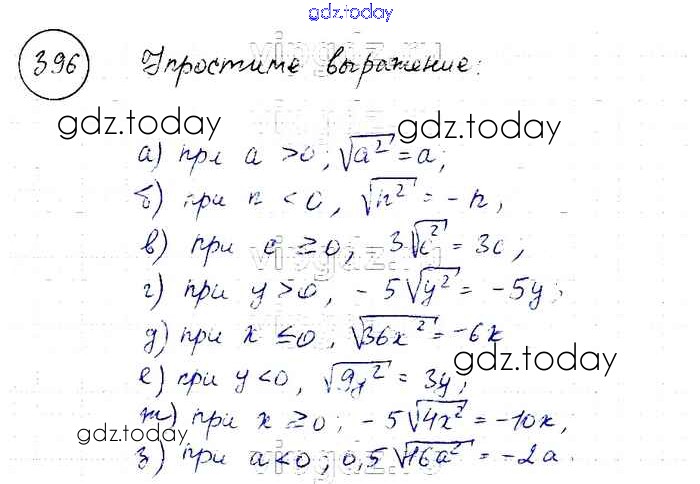 На страницах сайта gdz.today вы найдете учебный и вспомогательный материал, направленный на улучшения знаний школьной программы. ГДЗ - онлайн мир знаний Решение к упражнениям 396 Учебнику по Алгебре для 8 класса Макарычев, Миндюк Просвещение 2016