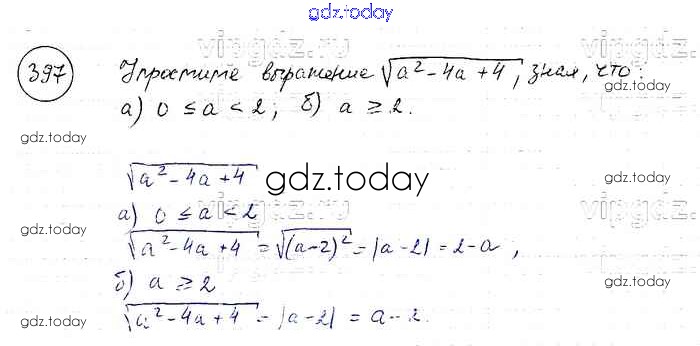 На страницах сайта gdz.today вы найдете учебный и вспомогательный материал, направленный на улучшения знаний школьной программы. ГДЗ - онлайн мир знаний Решение к упражнениям 397 Учебнику по Алгебре для 8 класса Макарычев, Миндюк Просвещение 2016