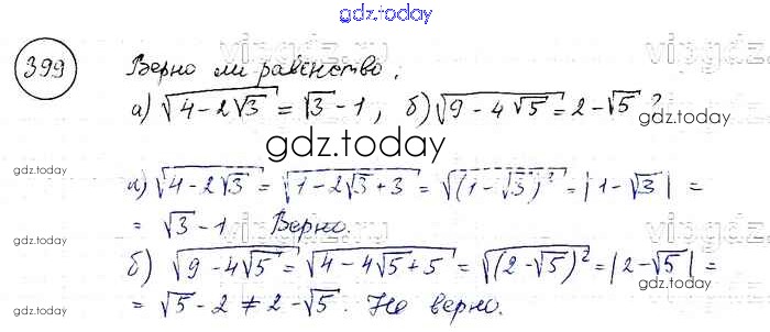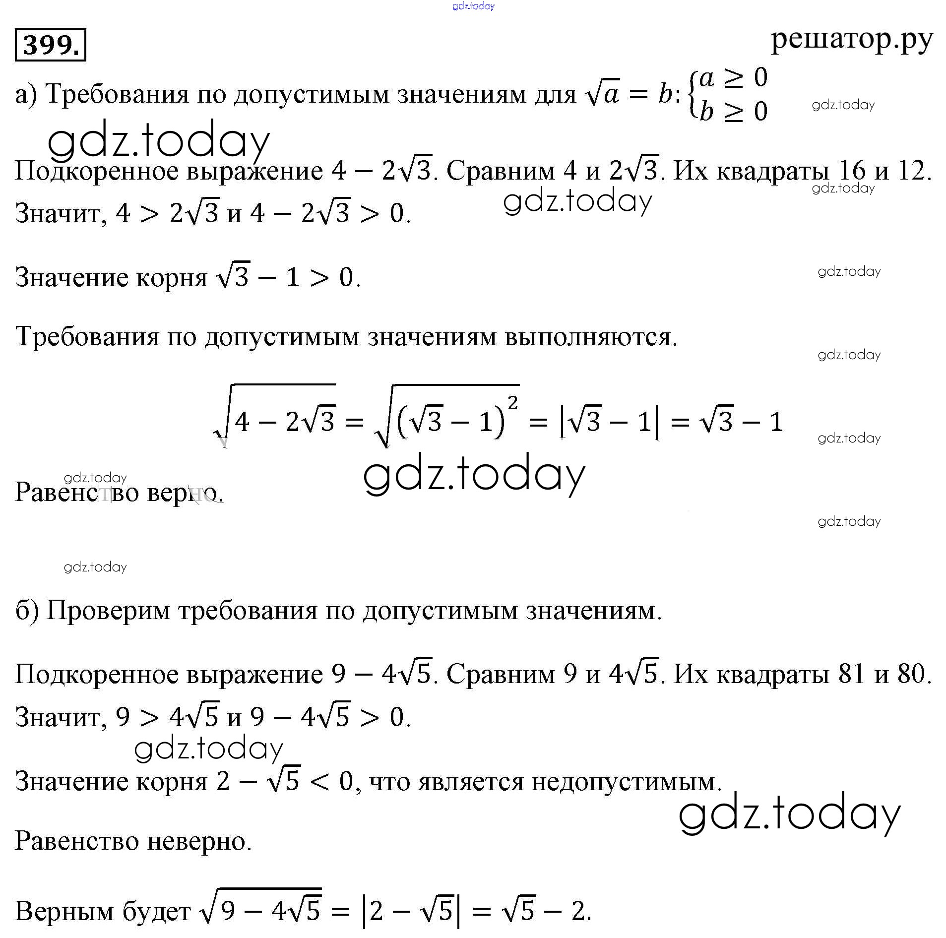 На страницах сайта gdz.today вы найдете учебный и вспомогательный материал, направленный на улучшения знаний школьной программы. ГДЗ - онлайн мир знаний Решение к упражнениям 399 Учебнику по Алгебре для 8 класса Макарычев, Миндюк Просвещение 2016