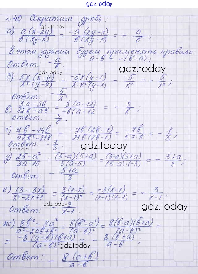 На страницах сайта gdz.today вы найдете учебный и вспомогательный материал, направленный на улучшения знаний школьной программы. ГДЗ - онлайн мир знаний Решение к упражнениям 40 Учебнику по Алгебре для 8 класса Макарычев, Миндюк Просвещение 2016