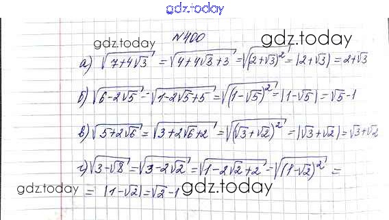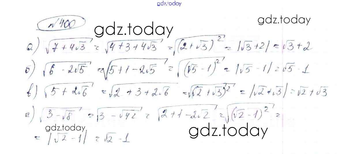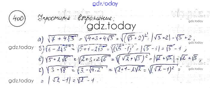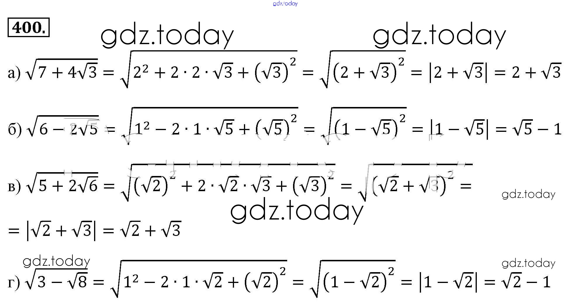 На страницах сайта gdz.today вы найдете учебный и вспомогательный материал, направленный на улучшения знаний школьной программы. ГДЗ - онлайн мир знаний Решение к упражнениям 400 Учебнику по Алгебре для 8 класса Макарычев, Миндюк Просвещение 2016