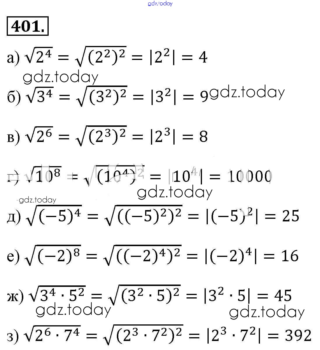 На страницах сайта gdz.today вы найдете учебный и вспомогательный материал, направленный на улучшения знаний школьной программы. ГДЗ - онлайн мир знаний Решение к упражнениям 401 Учебнику по Алгебре для 8 класса Макарычев, Миндюк Просвещение 2016