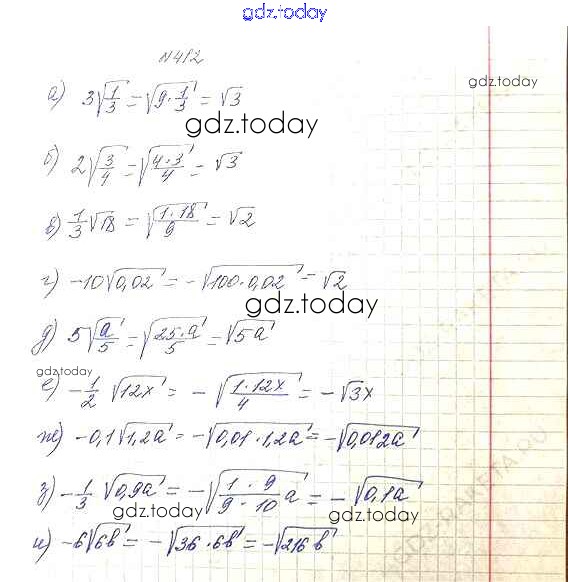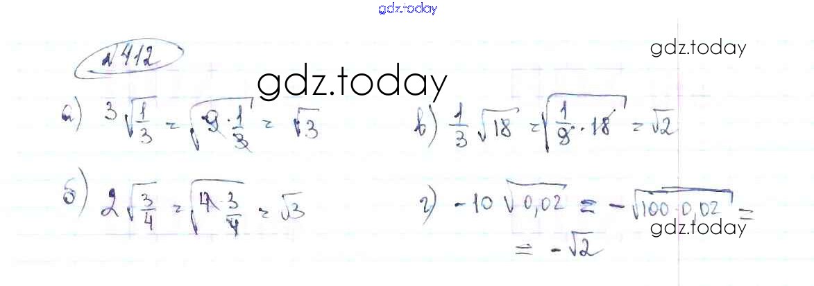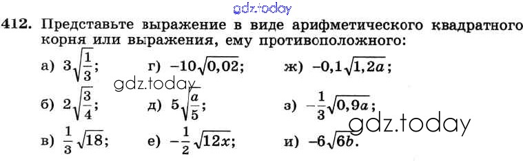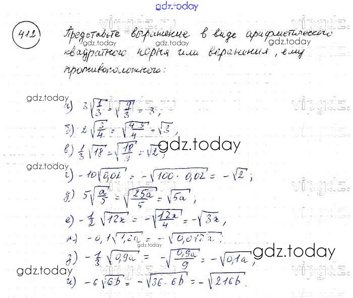 На страницах сайта gdz.today вы найдете учебный и вспомогательный материал, направленный на улучшения знаний школьной программы. ГДЗ - онлайн мир знаний Решение к упражнениям 412 Учебнику по Алгебре для 8 класса Макарычев, Миндюк Просвещение 2016