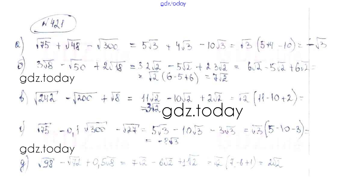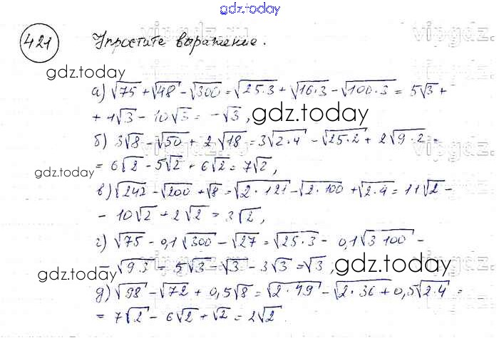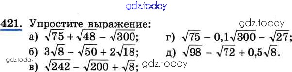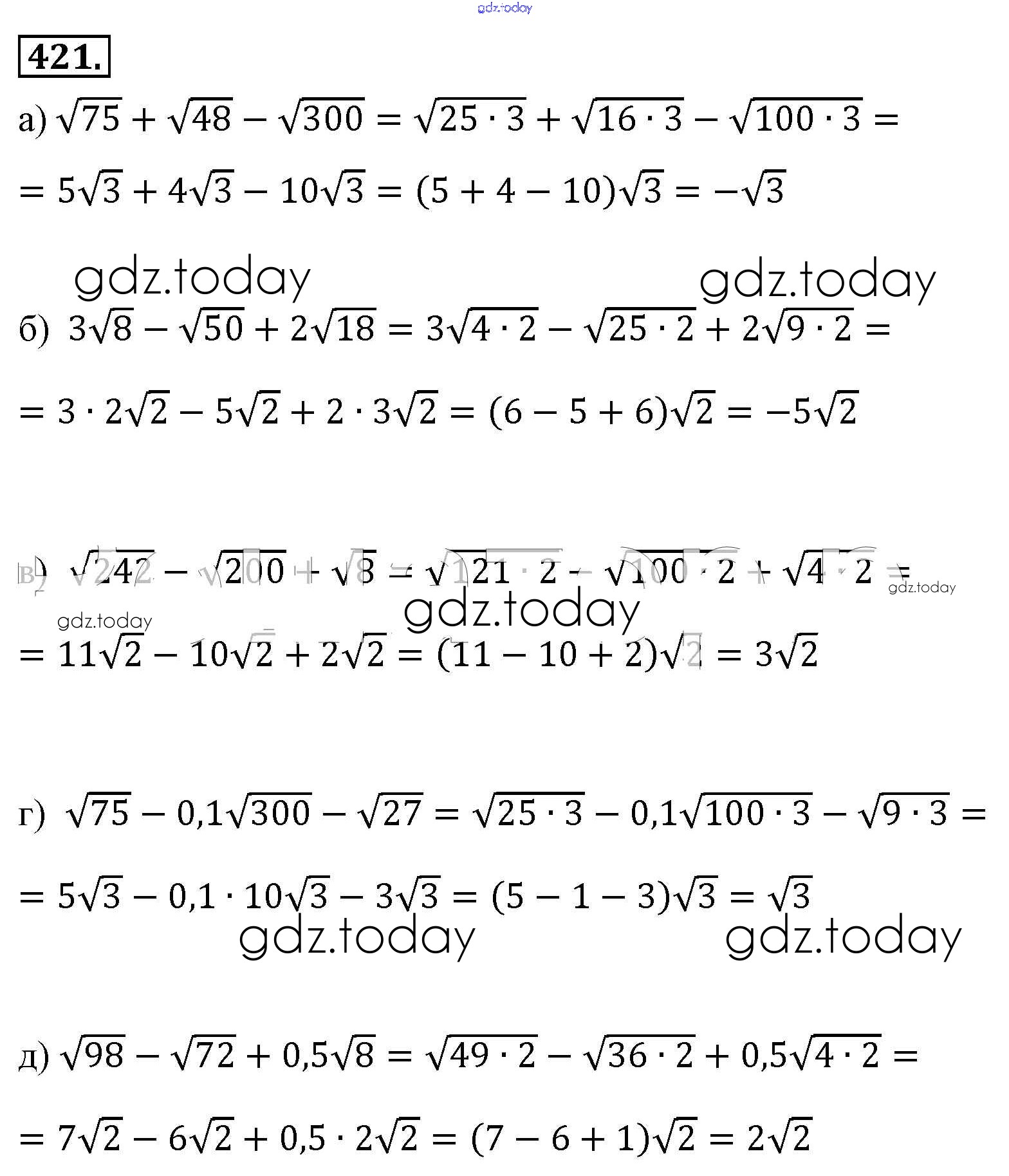 На страницах сайта gdz.today вы найдете учебный и вспомогательный материал, направленный на улучшения знаний школьной программы. ГДЗ - онлайн мир знаний Решение к упражнениям 421 Учебнику по Алгебре для 8 класса Макарычев, Миндюк Просвещение 2016
