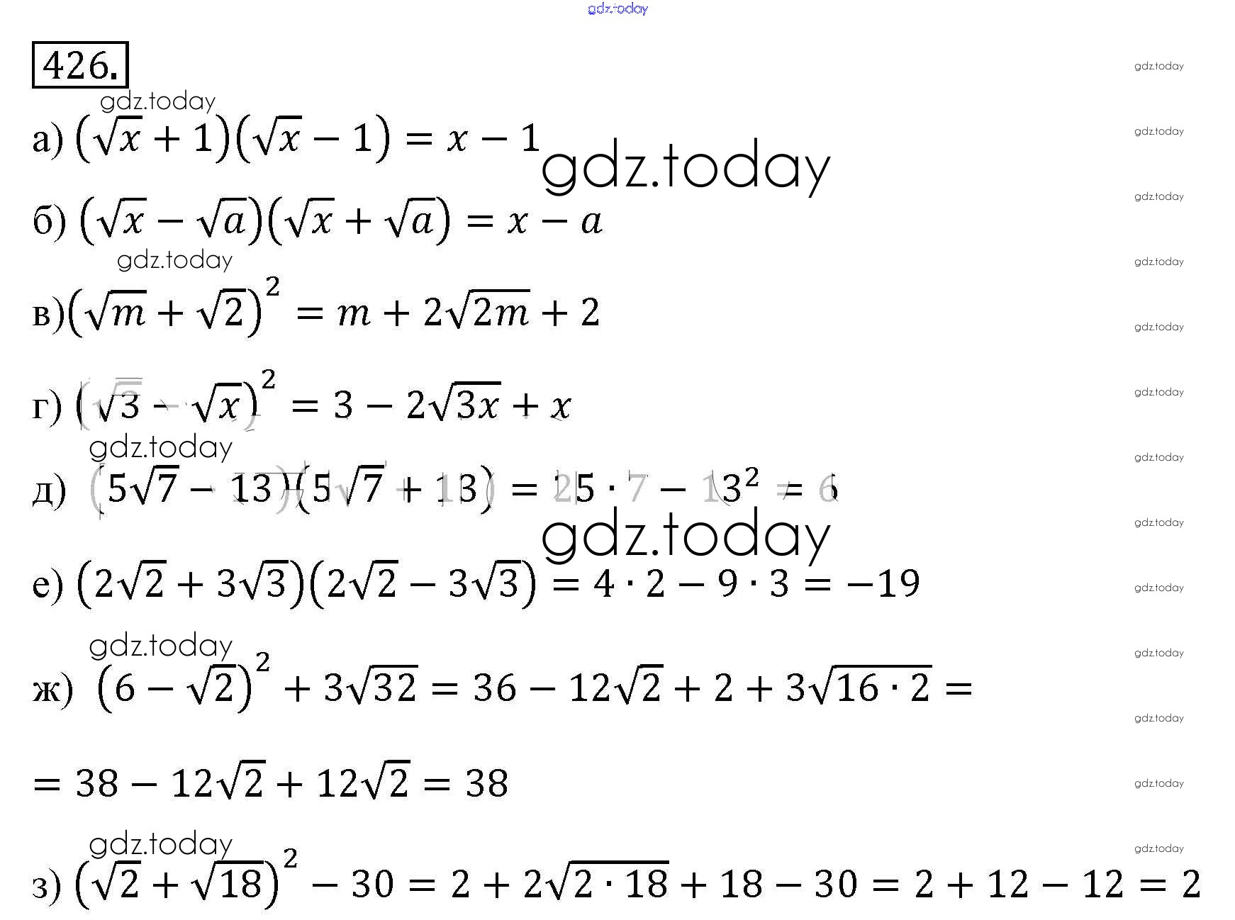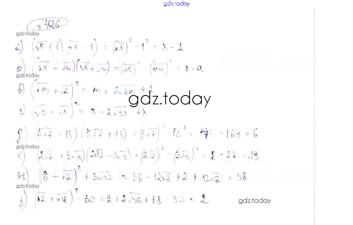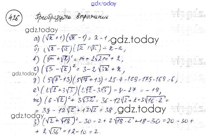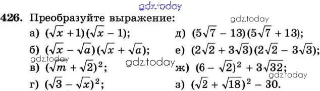 На страницах сайта gdz.today вы найдете учебный и вспомогательный материал, направленный на улучшения знаний школьной программы. ГДЗ - онлайн мир знаний Решение к упражнениям 426 Учебнику по Алгебре для 8 класса Макарычев, Миндюк Просвещение 2016