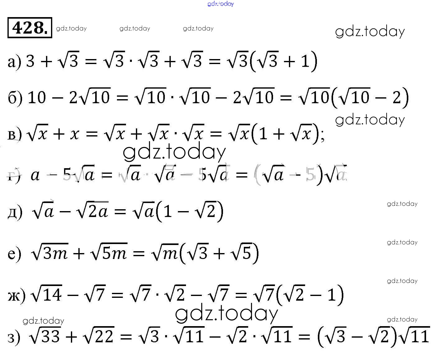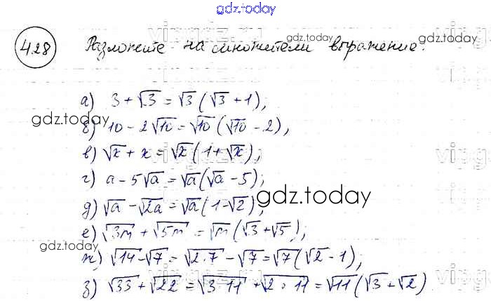 На страницах сайта gdz.today вы найдете учебный и вспомогательный материал, направленный на улучшения знаний школьной программы. ГДЗ - онлайн мир знаний Решение к упражнениям 428 Учебнику по Алгебре для 8 класса Макарычев, Миндюк Просвещение 2016