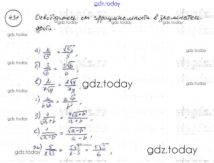 На страницах сайта gdz.today вы найдете учебный и вспомогательный материал, направленный на улучшения знаний школьной программы. ГДЗ - онлайн мир знаний Решение к упражнениям 431 Учебнику по Алгебре для 8 класса Макарычев, Миндюк Просвещение 2016