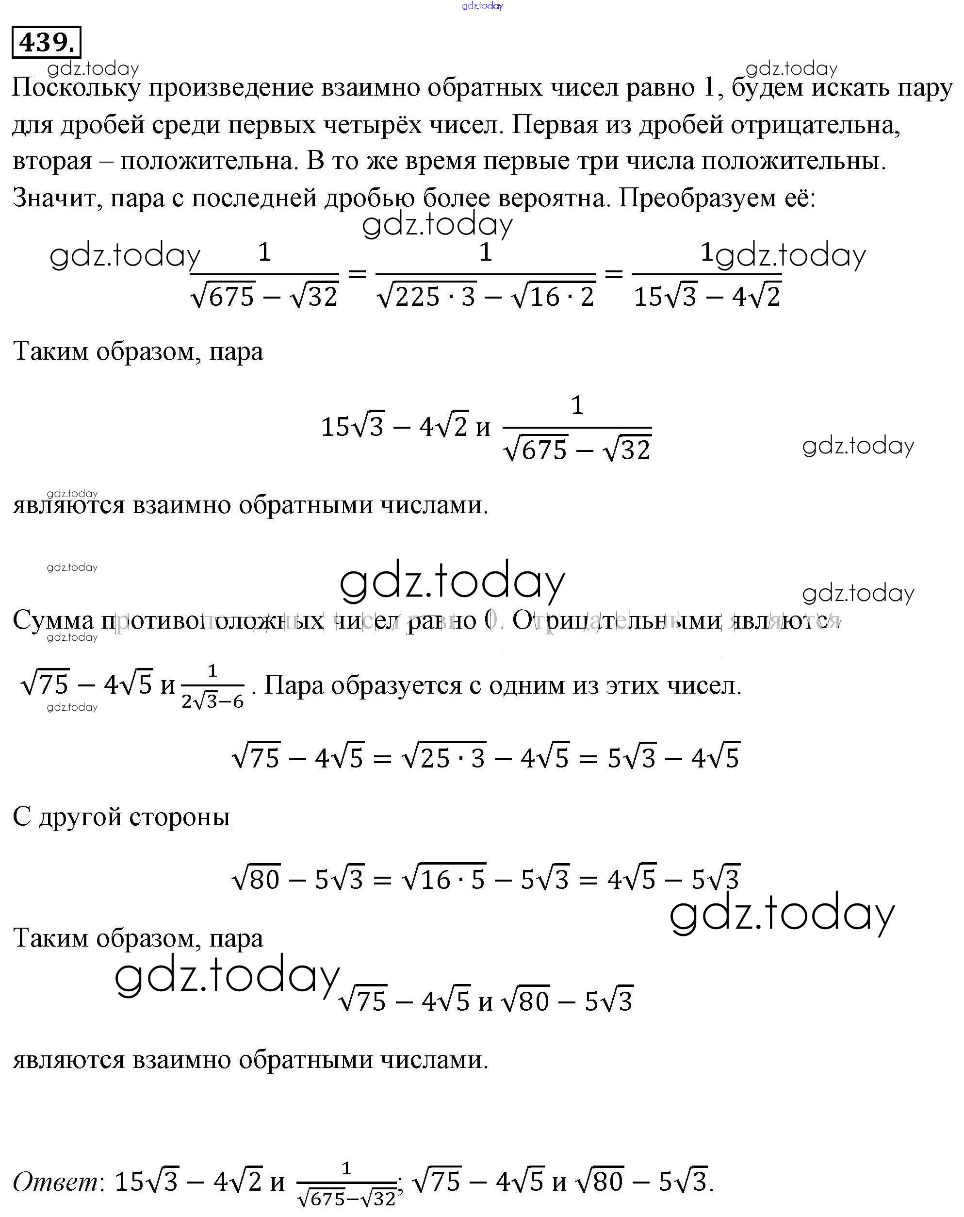 На страницах сайта gdz.today вы найдете учебный и вспомогательный материал, направленный на улучшения знаний школьной программы. ГДЗ - онлайн мир знаний Решение к упражнениям 439 Учебнику по Алгебре для 8 класса Макарычев, Миндюк Просвещение 2016