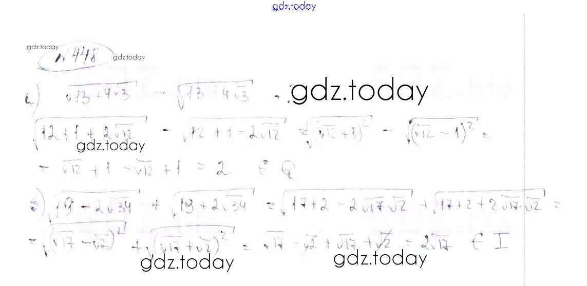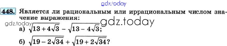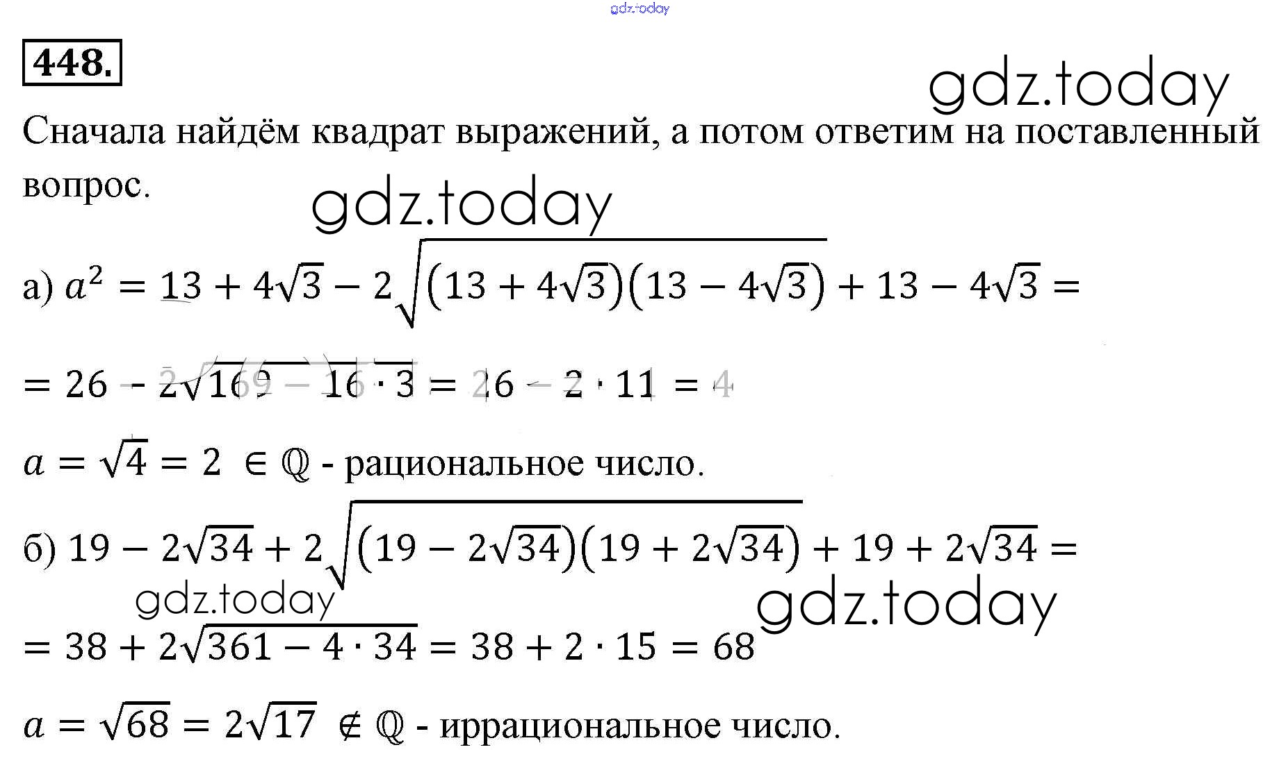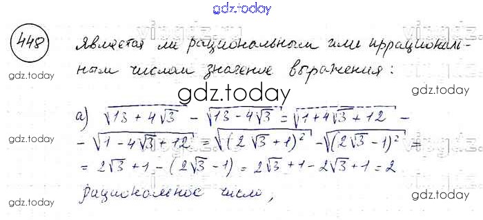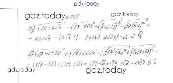 На страницах сайта gdz.today вы найдете учебный и вспомогательный материал, направленный на улучшения знаний школьной программы. ГДЗ - онлайн мир знаний Решение к упражнениям 448 Учебнику по Алгебре для 8 класса Макарычев, Миндюк Просвещение 2016