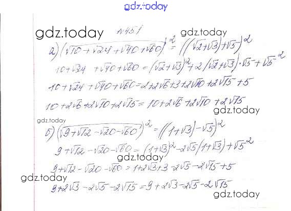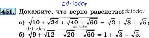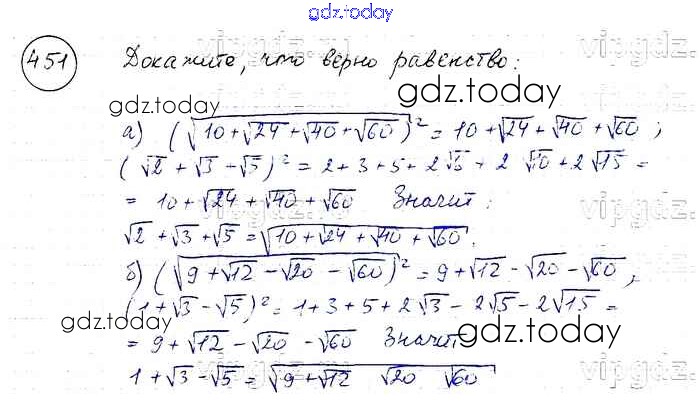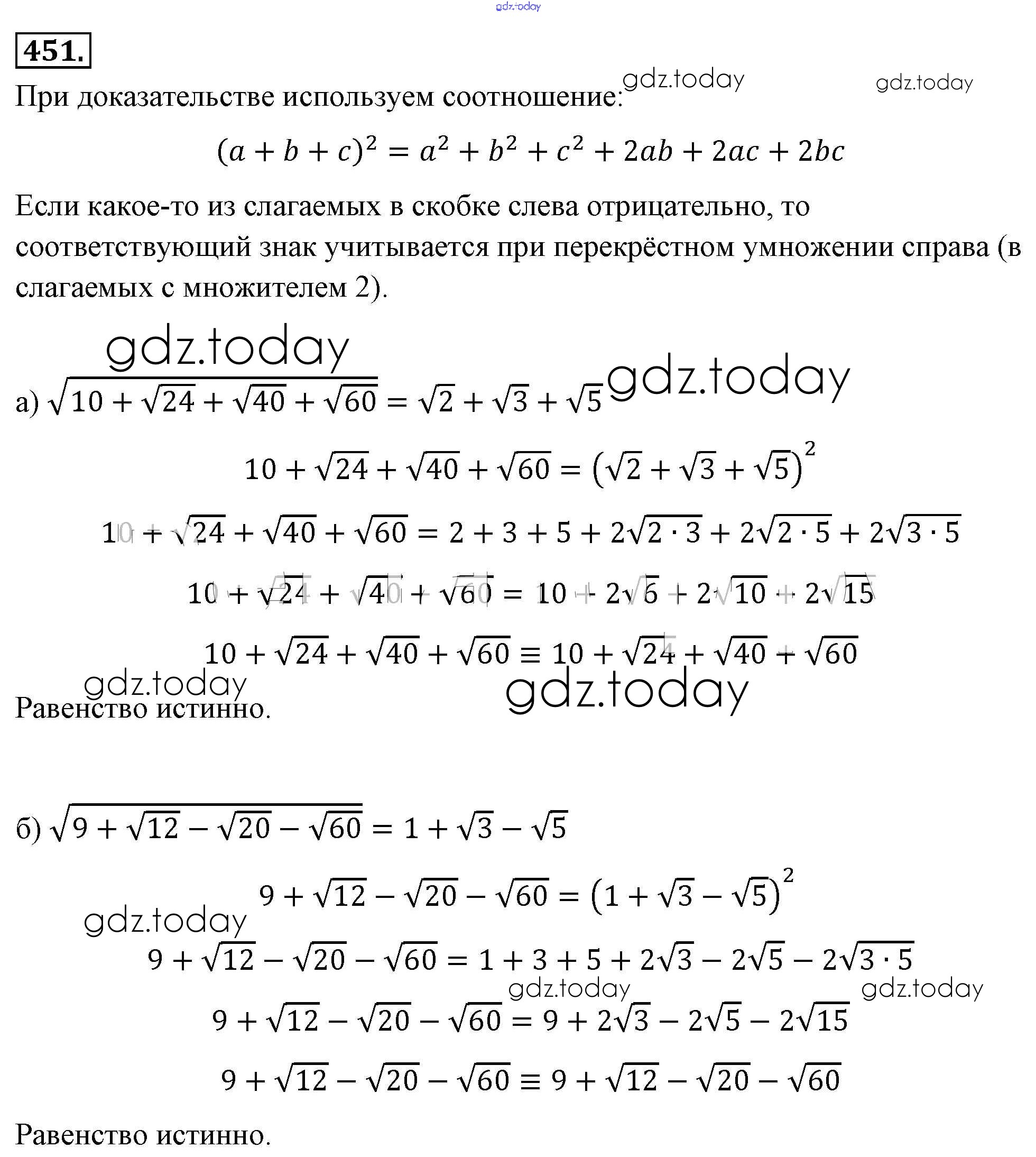 На страницах сайта gdz.today вы найдете учебный и вспомогательный материал, направленный на улучшения знаний школьной программы. ГДЗ - онлайн мир знаний Решение к упражнениям 451 Учебнику по Алгебре для 8 класса Макарычев, Миндюк Просвещение 2016