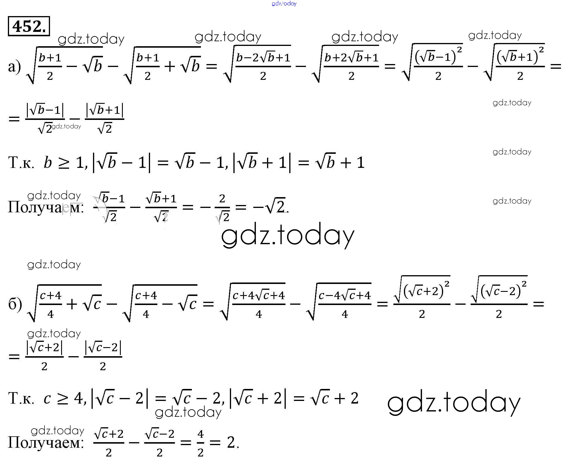 На страницах сайта gdz.today вы найдете учебный и вспомогательный материал, направленный на улучшения знаний школьной программы. ГДЗ - онлайн мир знаний Решение к упражнениям 452 Учебнику по Алгебре для 8 класса Макарычев, Миндюк Просвещение 2016