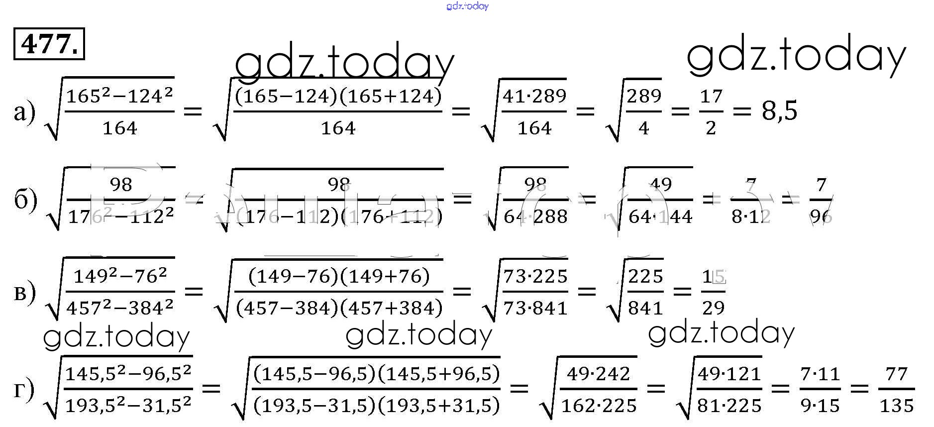На страницах сайта gdz.today вы найдете учебный и вспомогательный материал, направленный на улучшения знаний школьной программы. ГДЗ - онлайн мир знаний Решение к упражнениям 477 Учебнику по Алгебре для 8 класса Макарычев, Миндюк Просвещение 2016