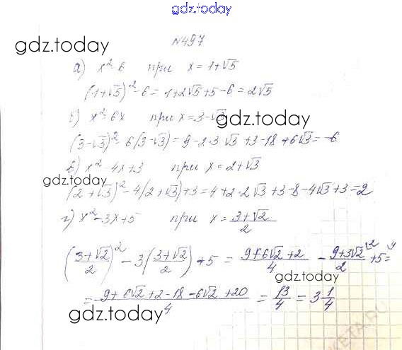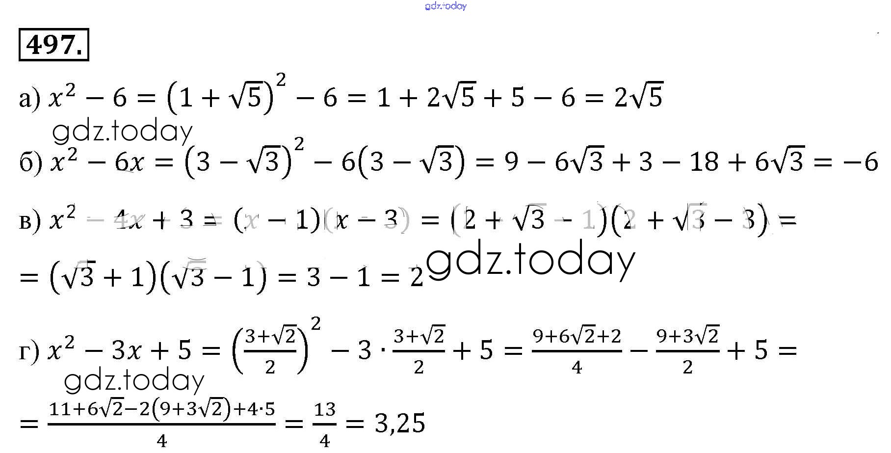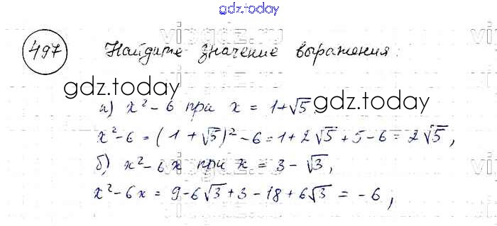 На страницах сайта gdz.today вы найдете учебный и вспомогательный материал, направленный на улучшения знаний школьной программы. ГДЗ - онлайн мир знаний Решение к упражнениям 497 Учебнику по Алгебре для 8 класса Макарычев, Миндюк Просвещение 2016