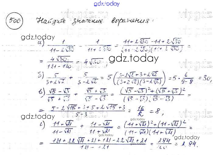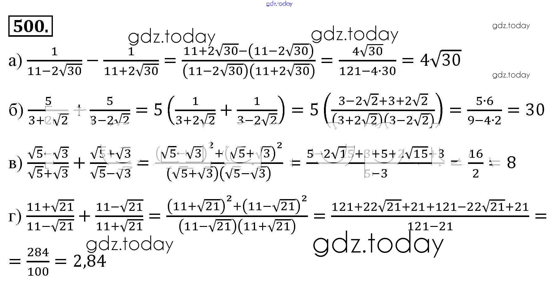 На страницах сайта gdz.today вы найдете учебный и вспомогательный материал, направленный на улучшения знаний школьной программы. ГДЗ - онлайн мир знаний Решение к упражнениям 500 Учебнику по Алгебре для 8 класса Макарычев, Миндюк Просвещение 2016