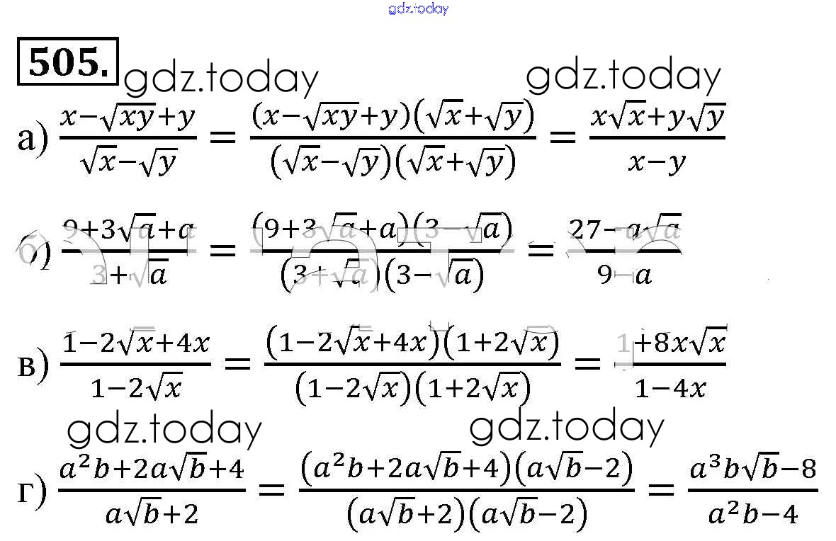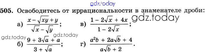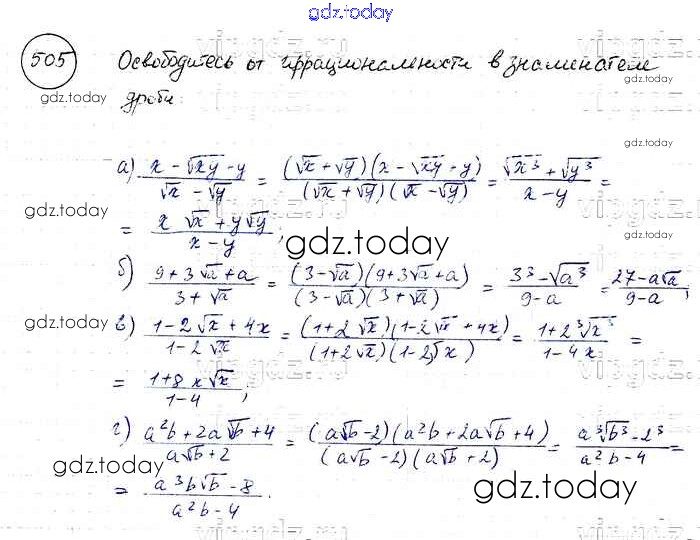 На страницах сайта gdz.today вы найдете учебный и вспомогательный материал, направленный на улучшения знаний школьной программы. ГДЗ - онлайн мир знаний Решение к упражнениям 505 Учебнику по Алгебре для 8 класса Макарычев, Миндюк Просвещение 2016