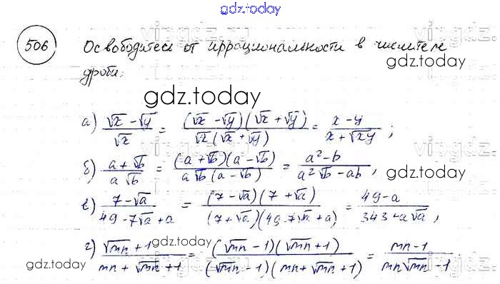 На страницах сайта gdz.today вы найдете учебный и вспомогательный материал, направленный на улучшения знаний школьной программы. ГДЗ - онлайн мир знаний Решение к упражнениям 506 Учебнику по Алгебре для 8 класса Макарычев, Миндюк Просвещение 2016