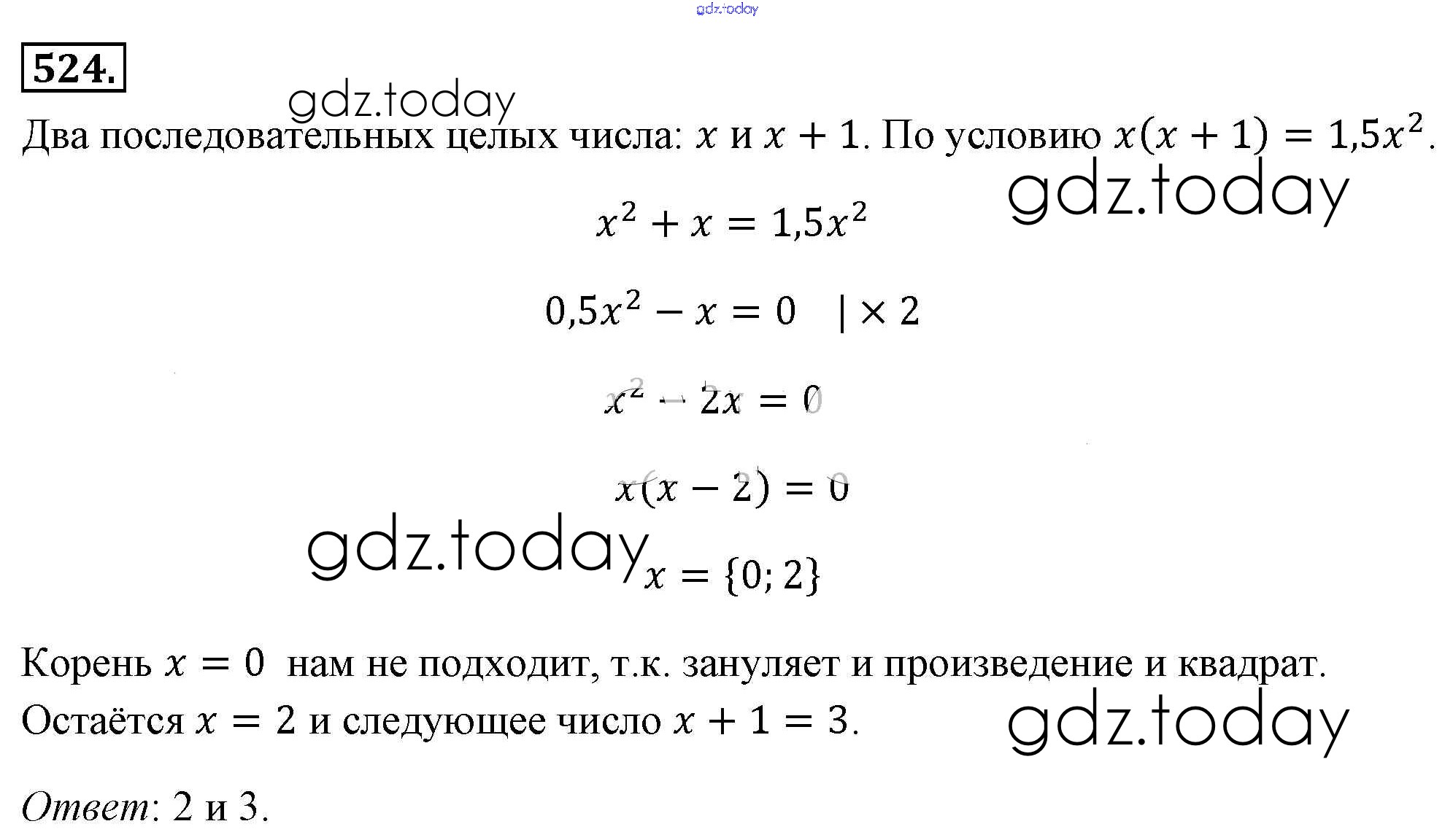 Ответы к Решение к упражнениям 524 Учебнику по Алгебре для 8 класса Макарычев, Миндюк Просвещение 2016