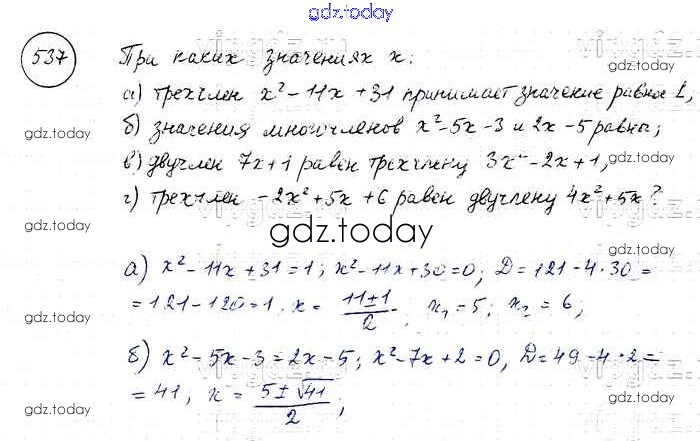 На страницах сайта gdz.today вы найдете учебный и вспомогательный материал, направленный на улучшения знаний школьной программы. ГДЗ - онлайн мир знаний Решение к упражнениям 537 Учебнику по Алгебре для 8 класса Макарычев, Миндюк Просвещение 2016