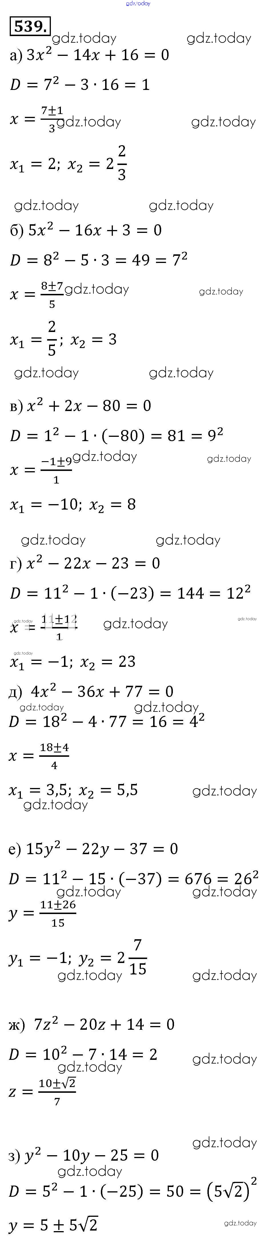 На страницах сайта gdz.today вы найдете учебный и вспомогательный материал, направленный на улучшения знаний школьной программы. ГДЗ - онлайн мир знаний Решение к упражнениям 539 Учебнику по Алгебре для 8 класса Макарычев, Миндюк Просвещение 2016