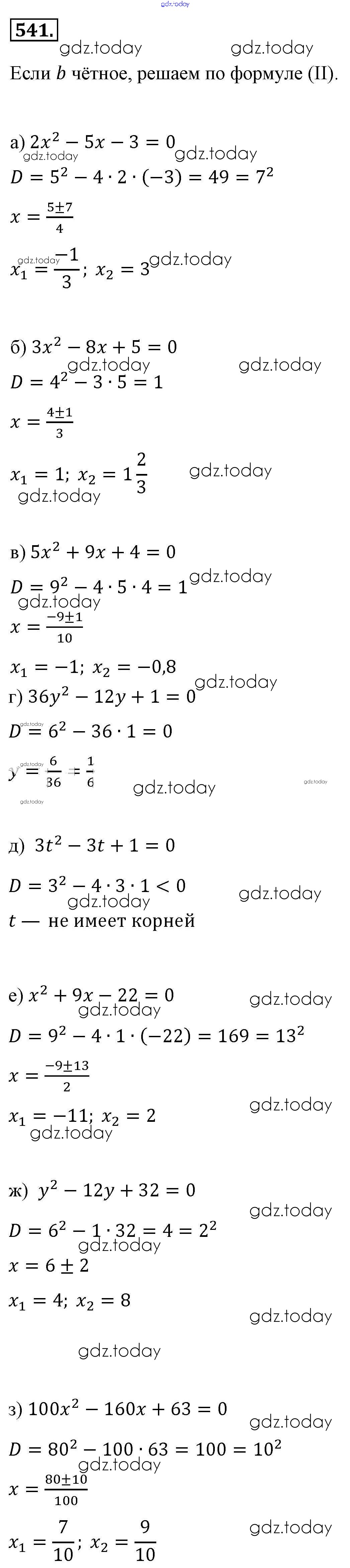 Ответы к Решение к упражнениям 541 Учебнику по Алгебре для 8 класса Макарычев, Миндюк Просвещение 2016