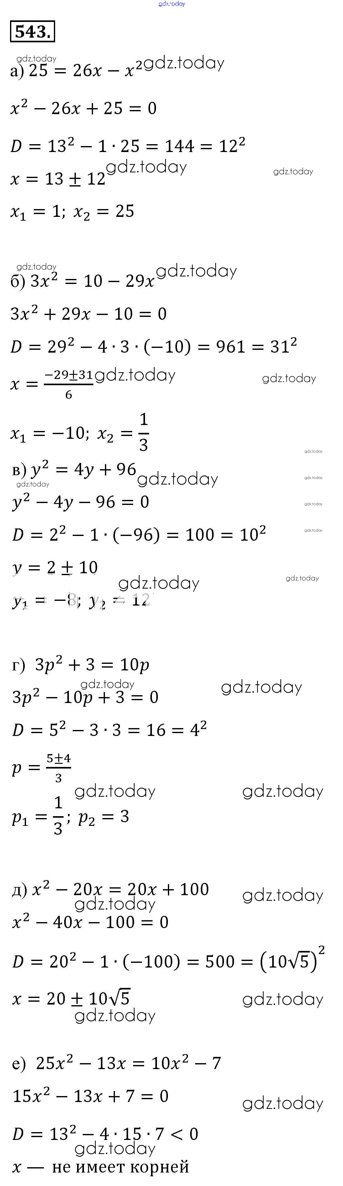 Ответы к Решение к упражнениям 543 Учебнику по Алгебре для 8 класса Макарычев, Миндюк Просвещение 2016