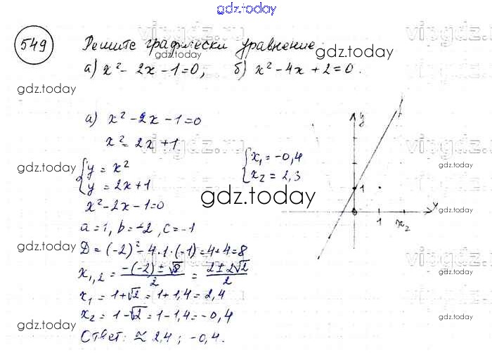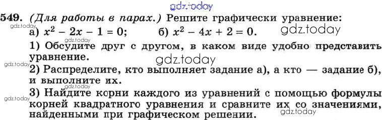 На страницах сайта gdz.today вы найдете учебный и вспомогательный материал, направленный на улучшения знаний школьной программы. ГДЗ - онлайн мир знаний Решение к упражнениям 549 Учебнику по Алгебре для 8 класса Макарычев, Миндюк Просвещение 2016