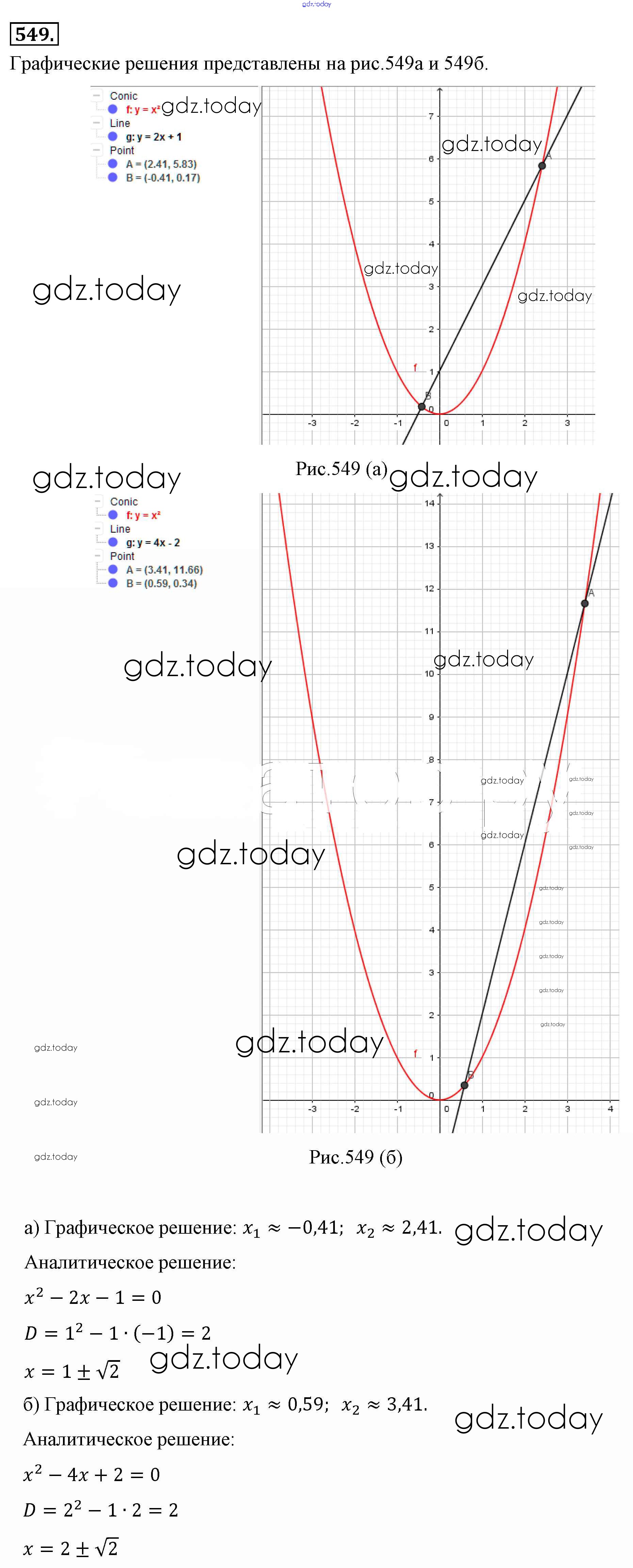 Ответы к Решение к упражнениям 549 Учебнику по Алгебре для 8 класса Макарычев, Миндюк Просвещение 2016