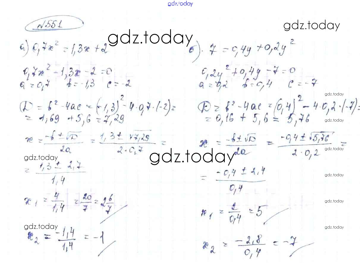 На страницах сайта gdz.today вы найдете учебный и вспомогательный материал, направленный на улучшения знаний школьной программы. ГДЗ - онлайн мир знаний Решение к упражнениям 551 Учебнику по Алгебре для 8 класса Макарычев, Миндюк Просвещение 2016