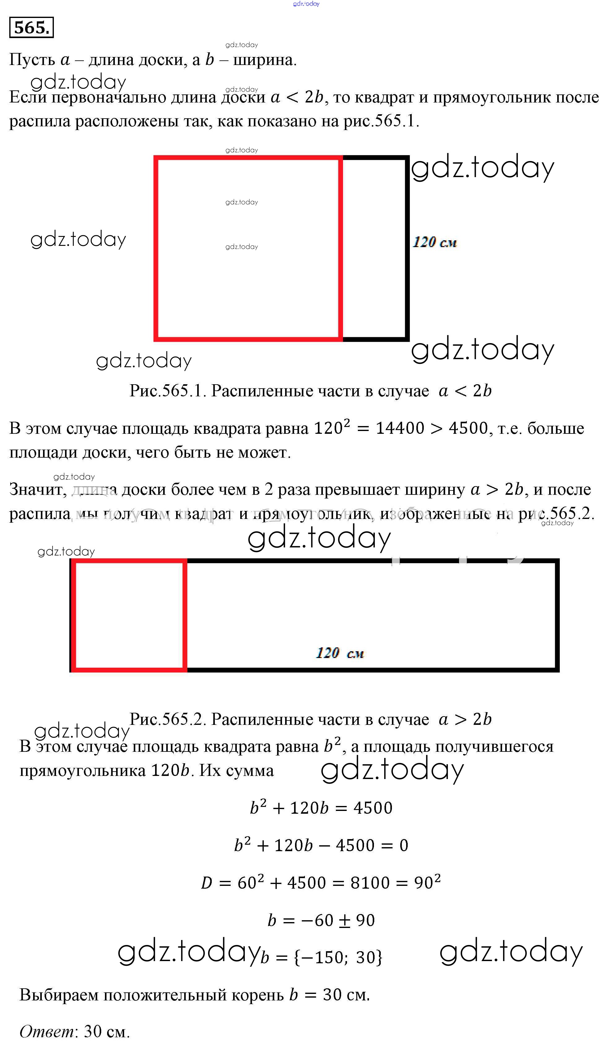 Ответы к Решение к упражнениям 565 Учебнику по Алгебре для 8 класса Макарычев, Миндюк Просвещение 2016