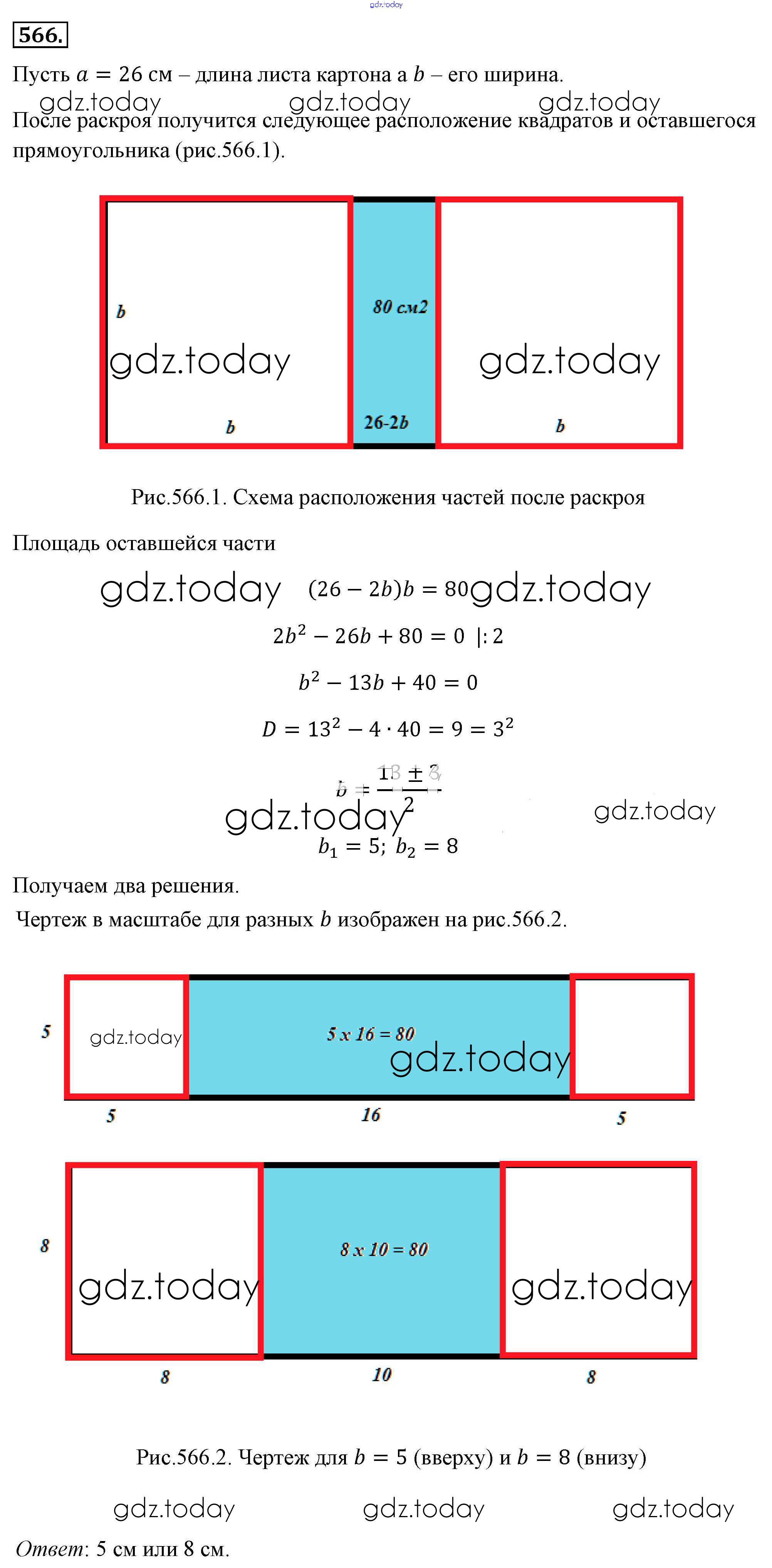 Ответы к Решение к упражнениям 566 Учебнику по Алгебре для 8 класса Макарычев, Миндюк Просвещение 2016