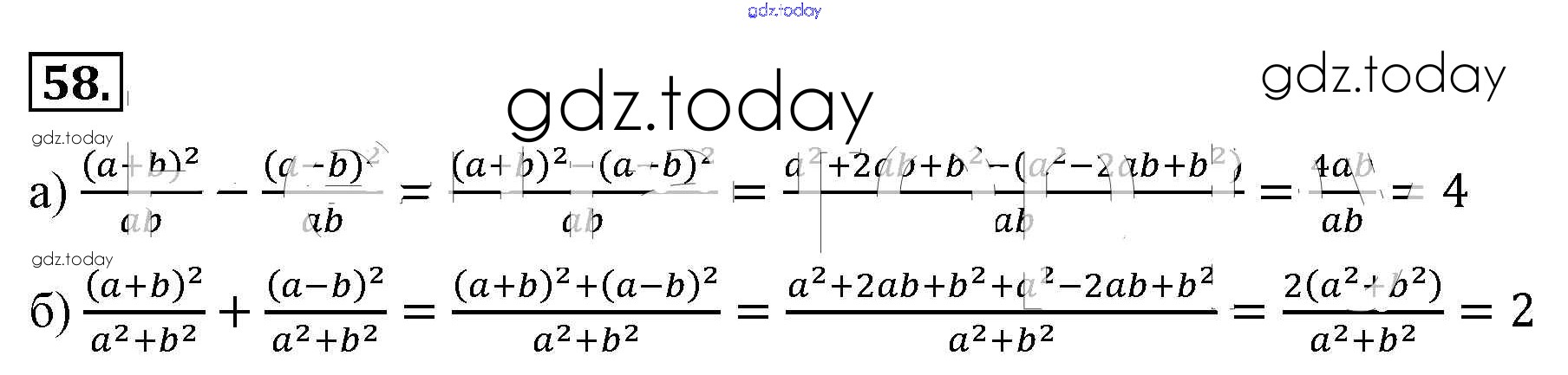 На страницах сайта gdz.today вы найдете учебный и вспомогательный материал, направленный на улучшения знаний школьной программы. ГДЗ - онлайн мир знаний Решение к упражнениям 58 Учебнику по Алгебре для 8 класса Макарычев, Миндюк Просвещение 2016